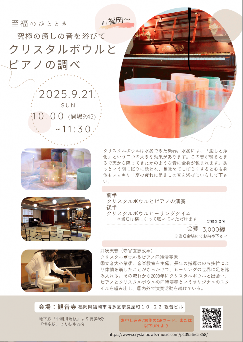 〜演奏会などのお知らせ〜 クリスタルボウル奏者&ピアニスト・井吹 天音