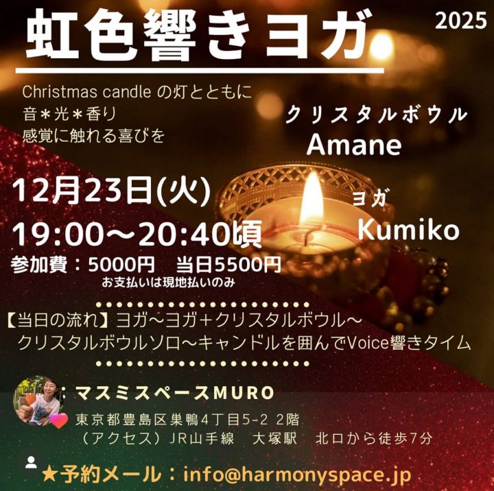 虹色響きヨガ 〜ヨガとクリスタルボウルのコラボレーション〜 キャンドルの灯火に包まれて