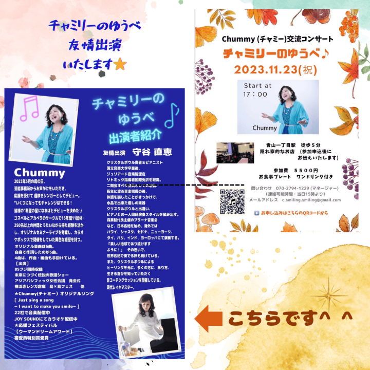 11月23日(水・祝)、素敵な歌姫Chummyさんのコンサートにクリスタルボウル&キーボードで友情出演いたします。
