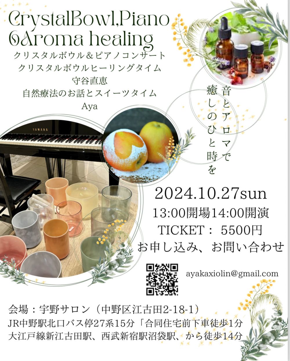 『CrystalBowl,Piano&Aroma healing』 音とアロマで癒しのひとときを