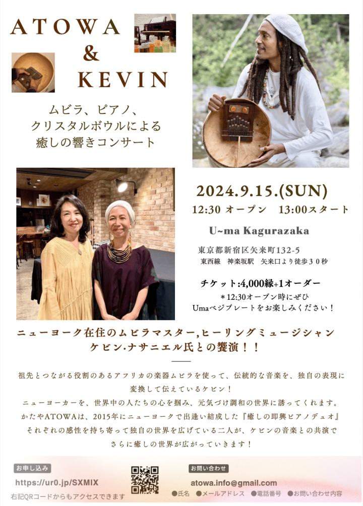 〜【ATOWA & KEVIN】〜 ムビラ、ピアノ、 クリスタルボウルによる癒しの響きコンサート