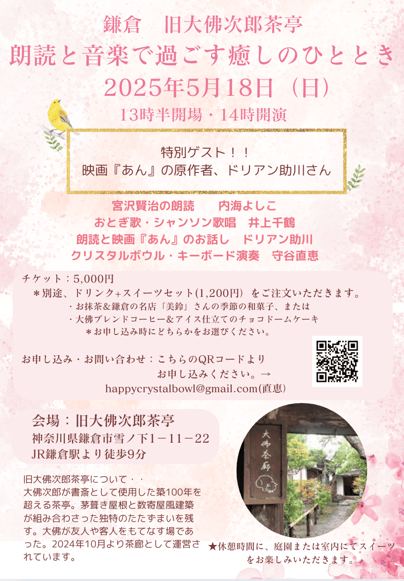 鎌倉 大佛次郎旧茶亭 朗読と音楽で過ごす癒しのひととき